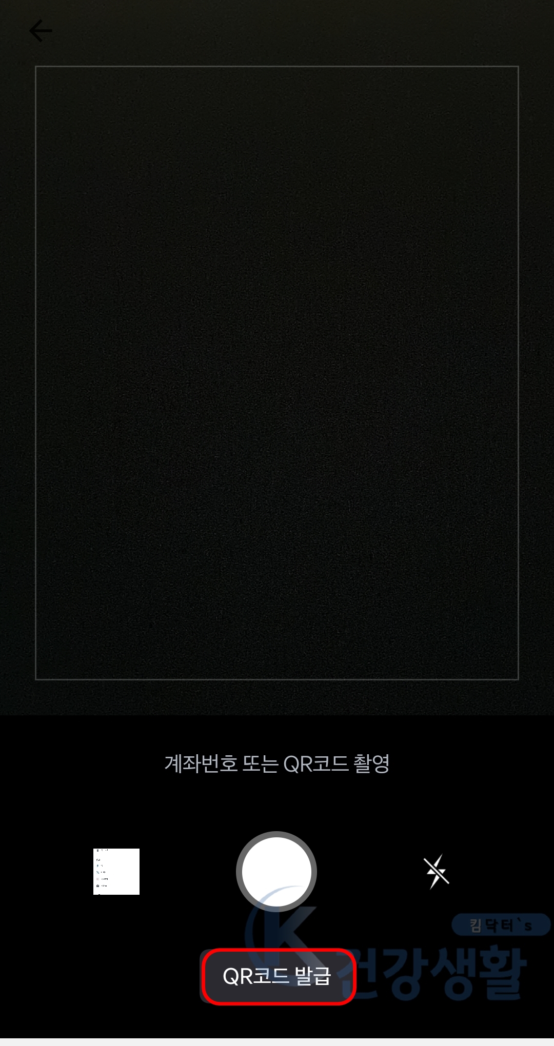 2. 실행된 카메라 화면 하단의 QR코드 발급을 클릭합니다.