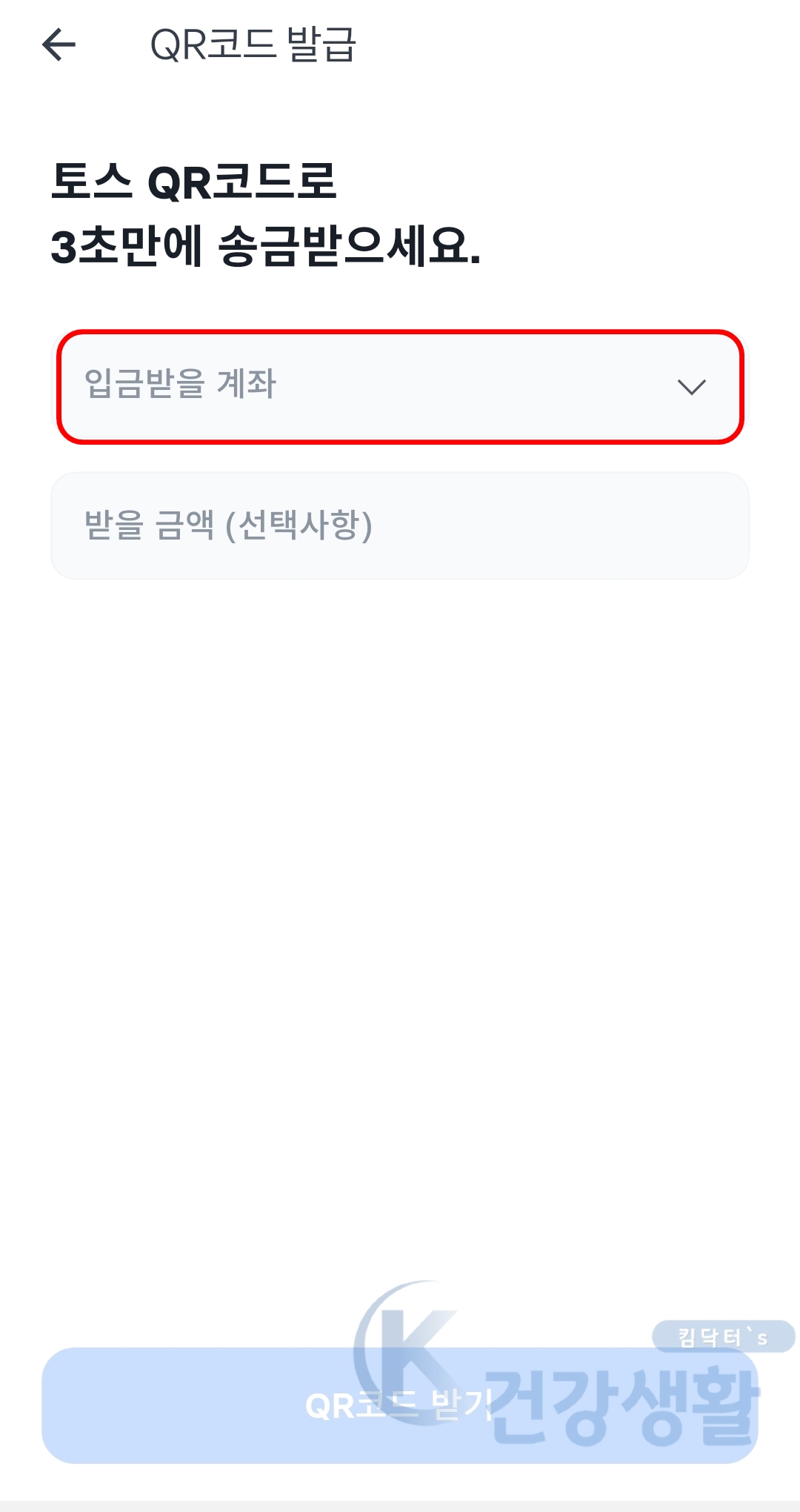 → 받을 금액(선택사항) 미입력시 토스 QR코드 스캔 화면