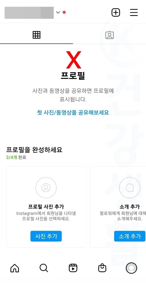 1. 인스타그램 앱에서 내 프로필을 클릭합니다.