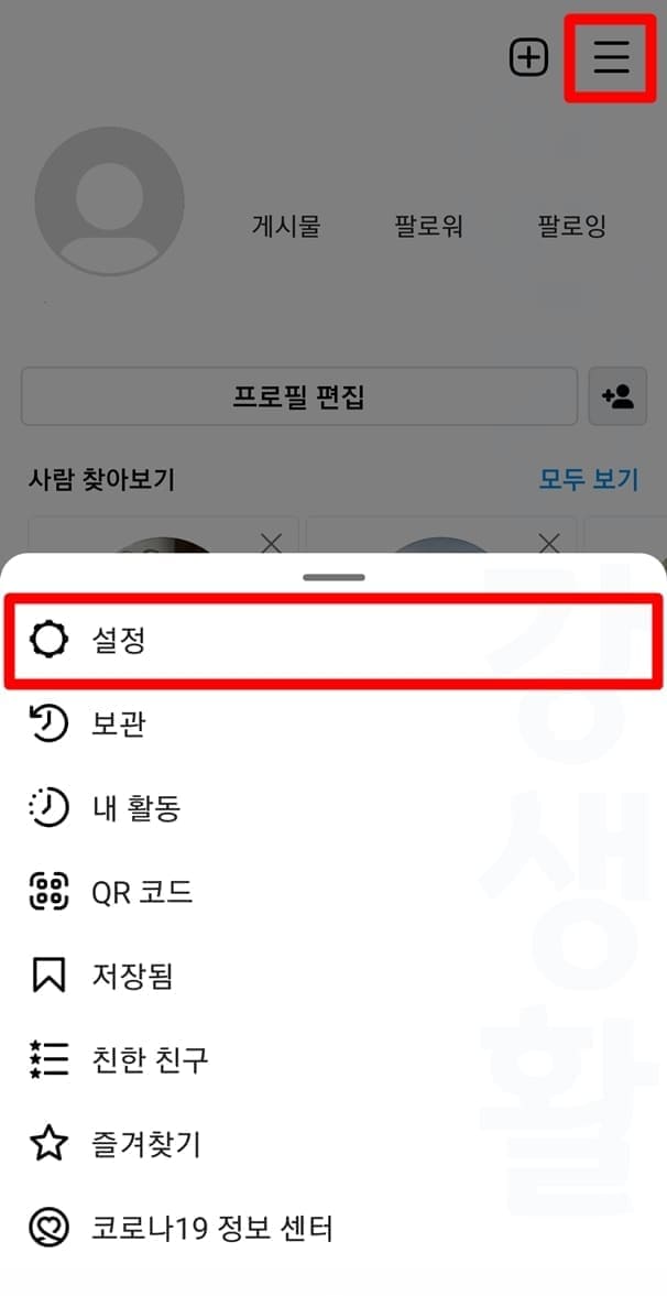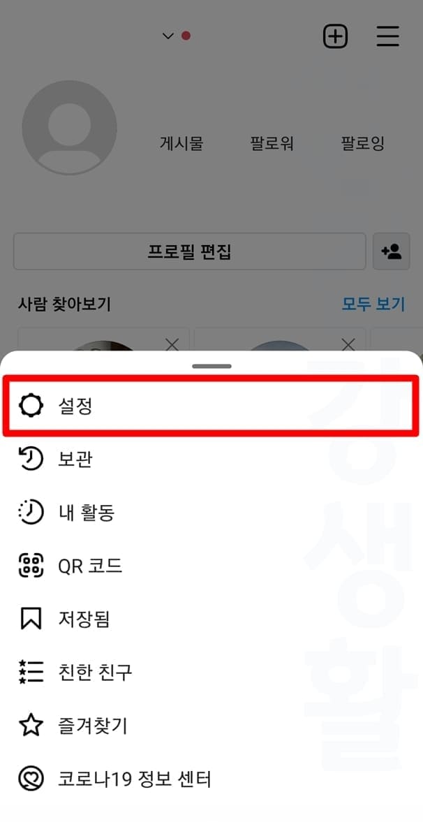 1. 내 프로필에서 더보기 버튼을 누릅니다.