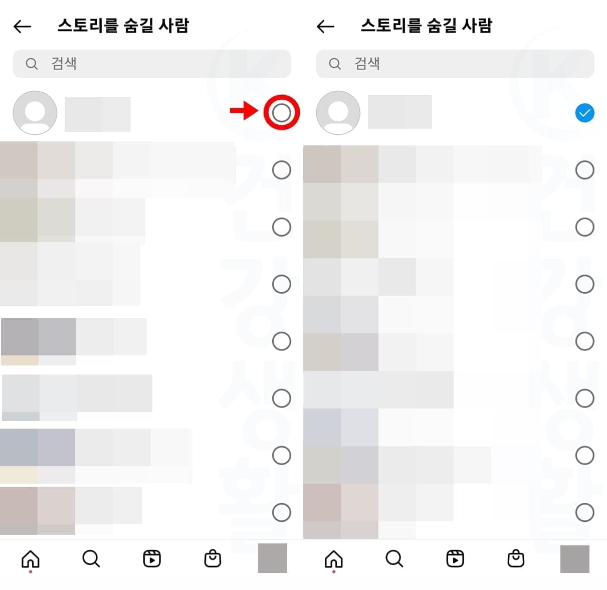 6. 내 스토리를 숨길 특정인을 모두 체크합니다.
