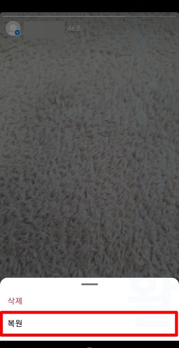 6. 삭제된 게시물을 확인한 후 누릅니다.