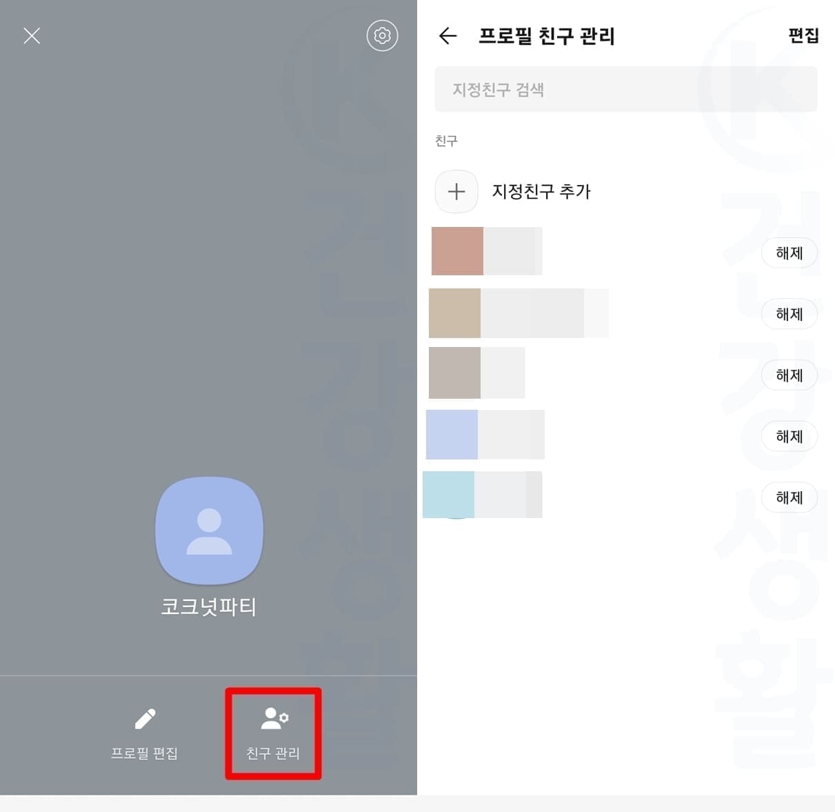 2. 친구 관리를 누릅니다.