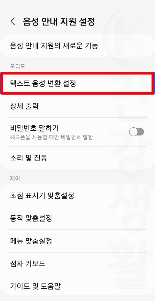 2. 텍스트 음성 변환 설정을 누릅니다.