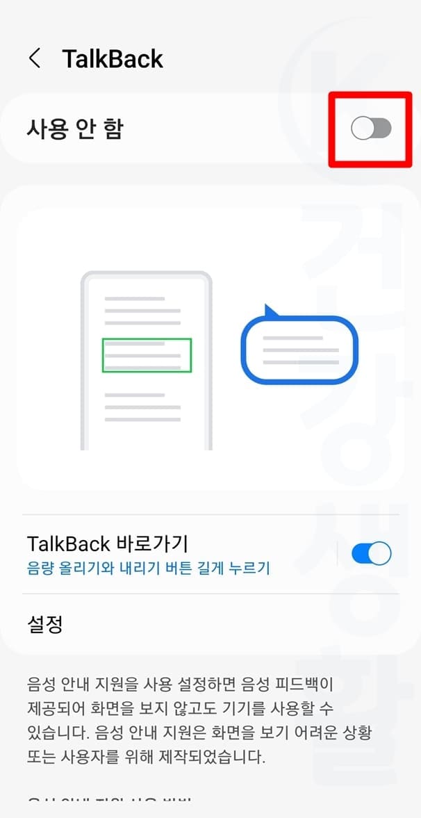 6. 삼성 토크백 TTS 모드가 설정되었습니다.