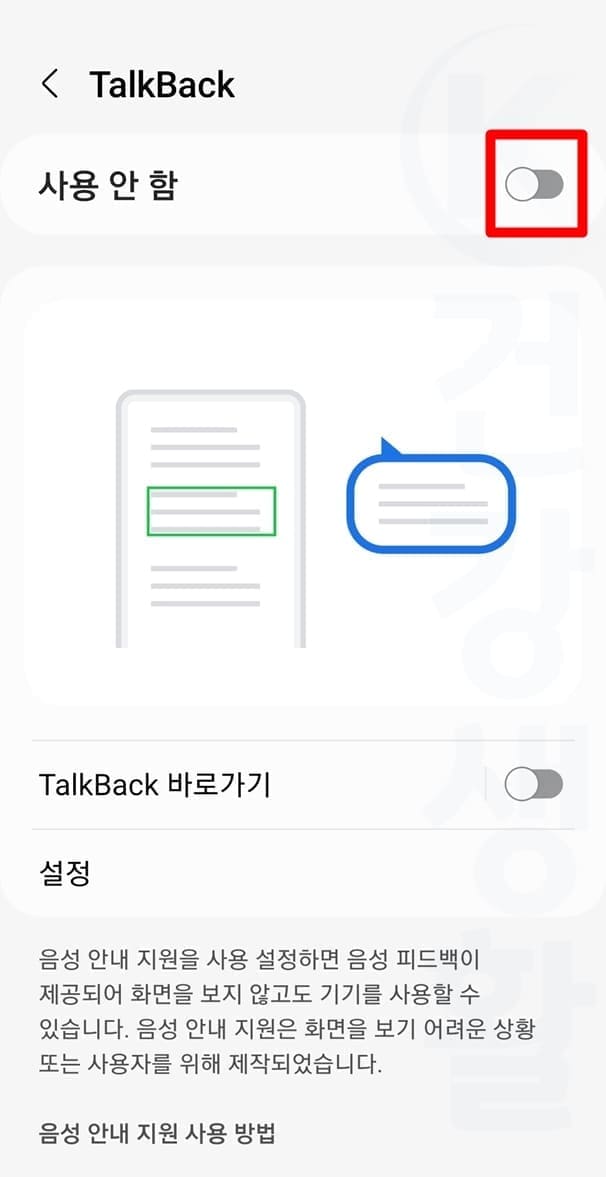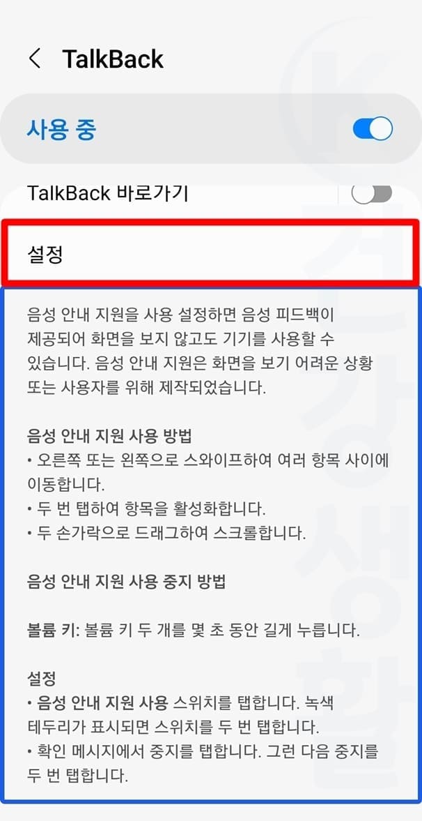 TTS를 이용하지 않을 땐 토크백 모드를 꺼주시는 것이 편리합니다. 삼성 TTS 토크백 모드를 해제하는 것은 두가지 방법이 있으니 편리하게 OFF해보세요.