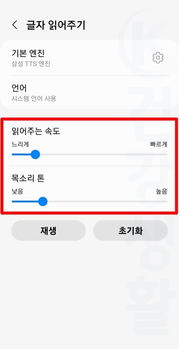 3. 읽어주는 속도와 목소리 톤을 설정합니다.