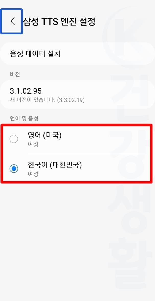 3. 삼성 TTS 언어 및 음성을 선택합니다.