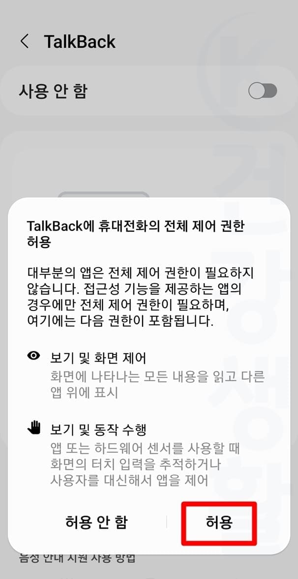5. 제어 권한 팝업에서 허용을 누릅니다.