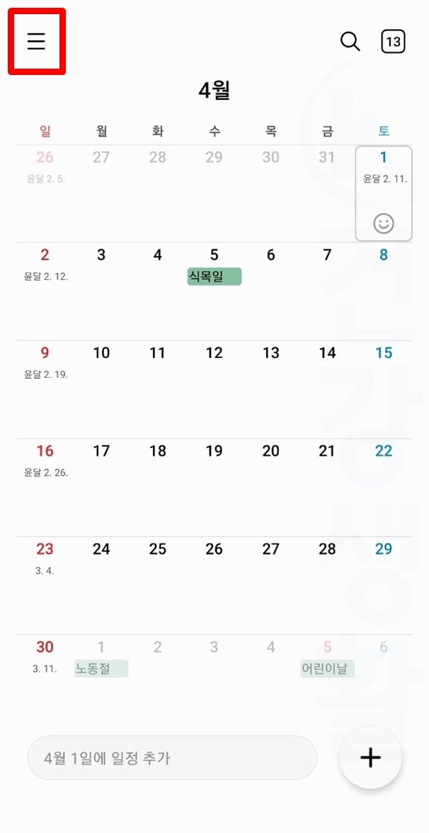 1. 갤럭시에서 캘린더 앱을 실행합니다.