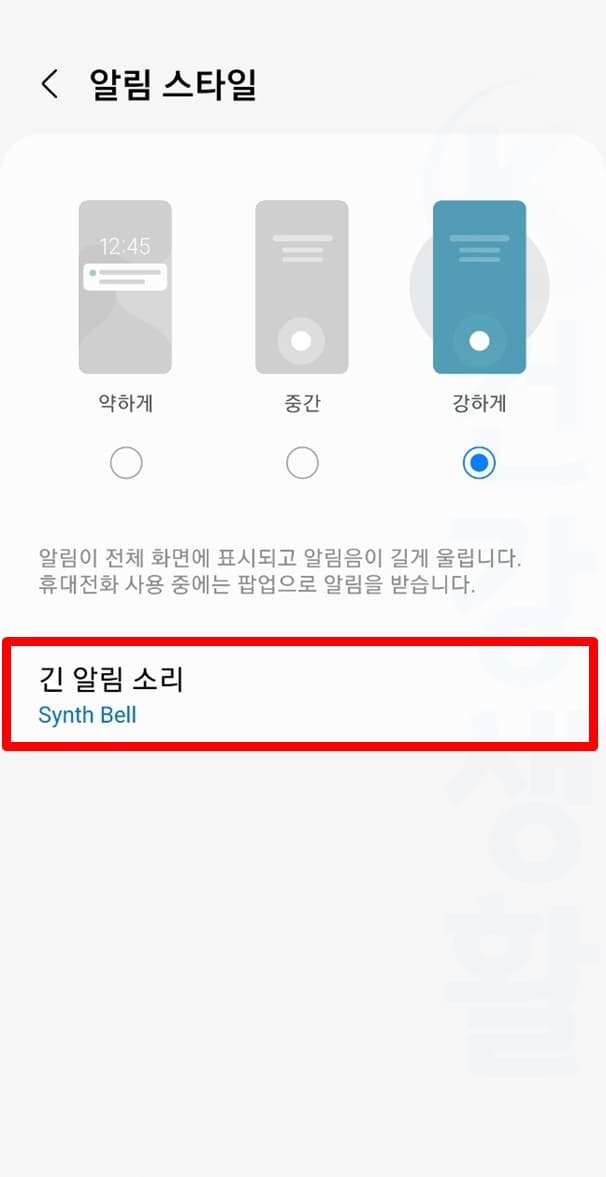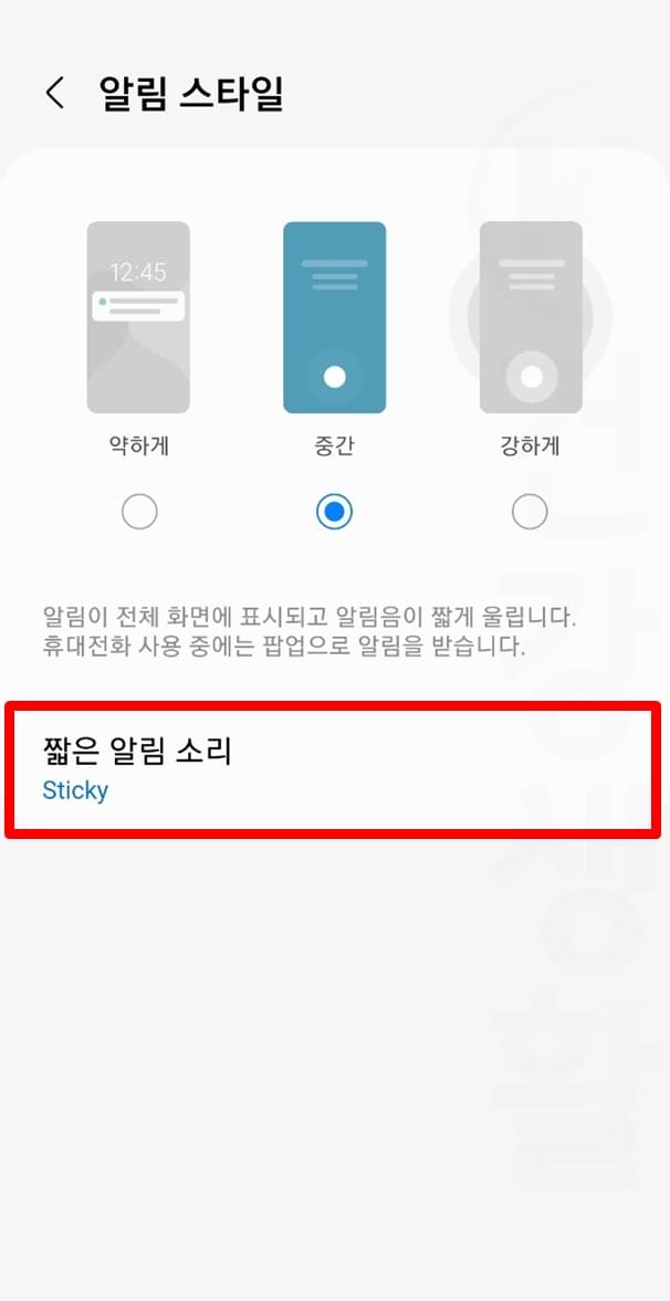 5. 약하게, 중간, 강하게에서 원하는 알림 스타일로 변경합니다.