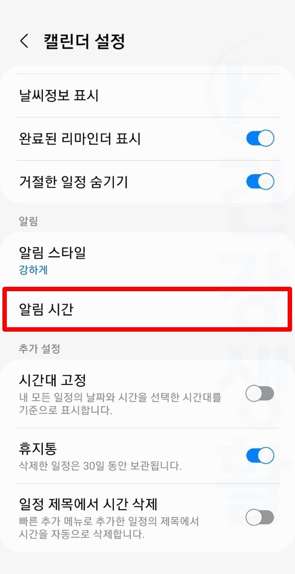 2. 갤럭시 삼성 캘린더 알림 시간 조절 방법 (끄기 설정 가능)