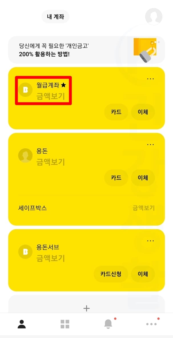 4. 카카오뱅크 계좌의 색상이 변경되었습니다.