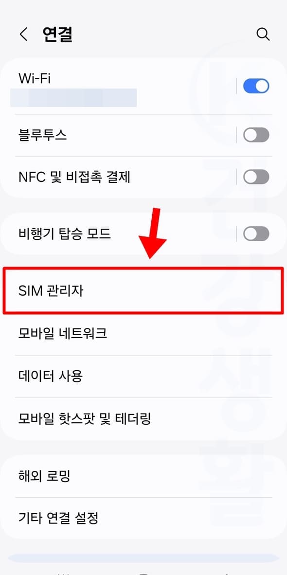 3. SIM 관리자를 누릅니다.